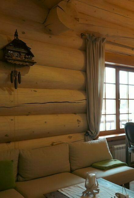 Чистовая обработка и конопатка. Все швы тщательно проконопачиваются льняным волокном или джутом, бревна дополнительно шлифуются, а фасад и внутренние поверхности обрабатываются антисептиками и маслами.