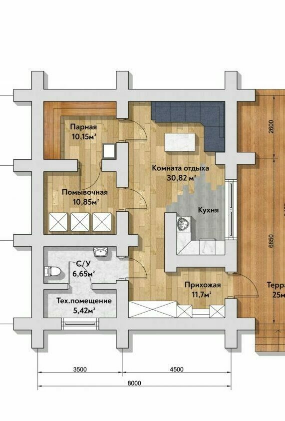 Комната отдыха с кухней: 30,82 м².