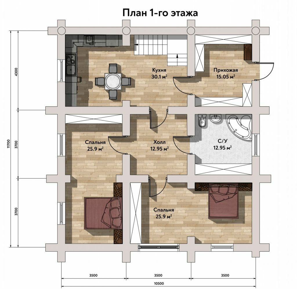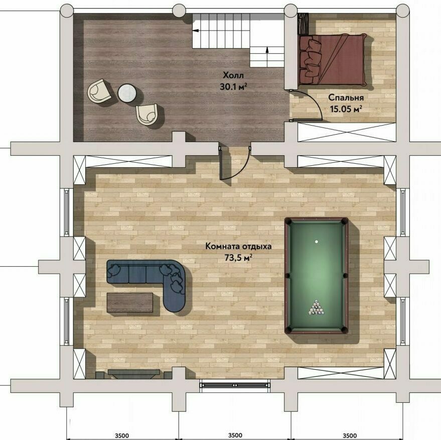 Планировочные преимущества: компактная площадь застройки при продуманной планировке; четкое разделение общественной (гостиная, кухня, комната отдыха) и приватной (спальни) зон; большая комната отдыха на 2-м этаже подходит для гостиной, игровой или сауны/банной зоны по желанию.