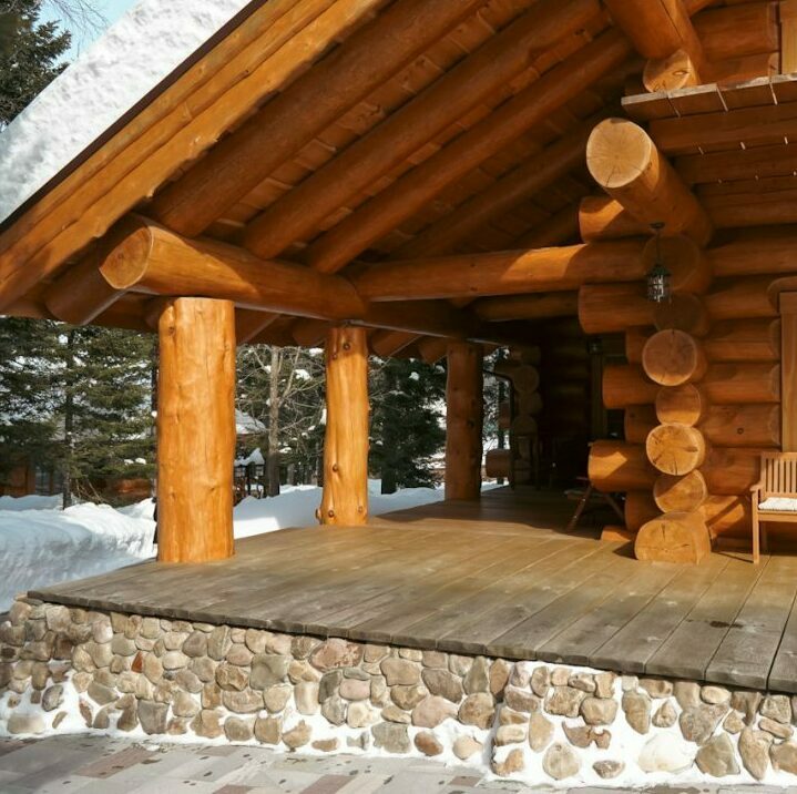 Усадка сруба. Готовое строение оставляют на 6–12 месяцев для естественной усадки, регулярно проверяют уровень, компенсируют возможные деформации.