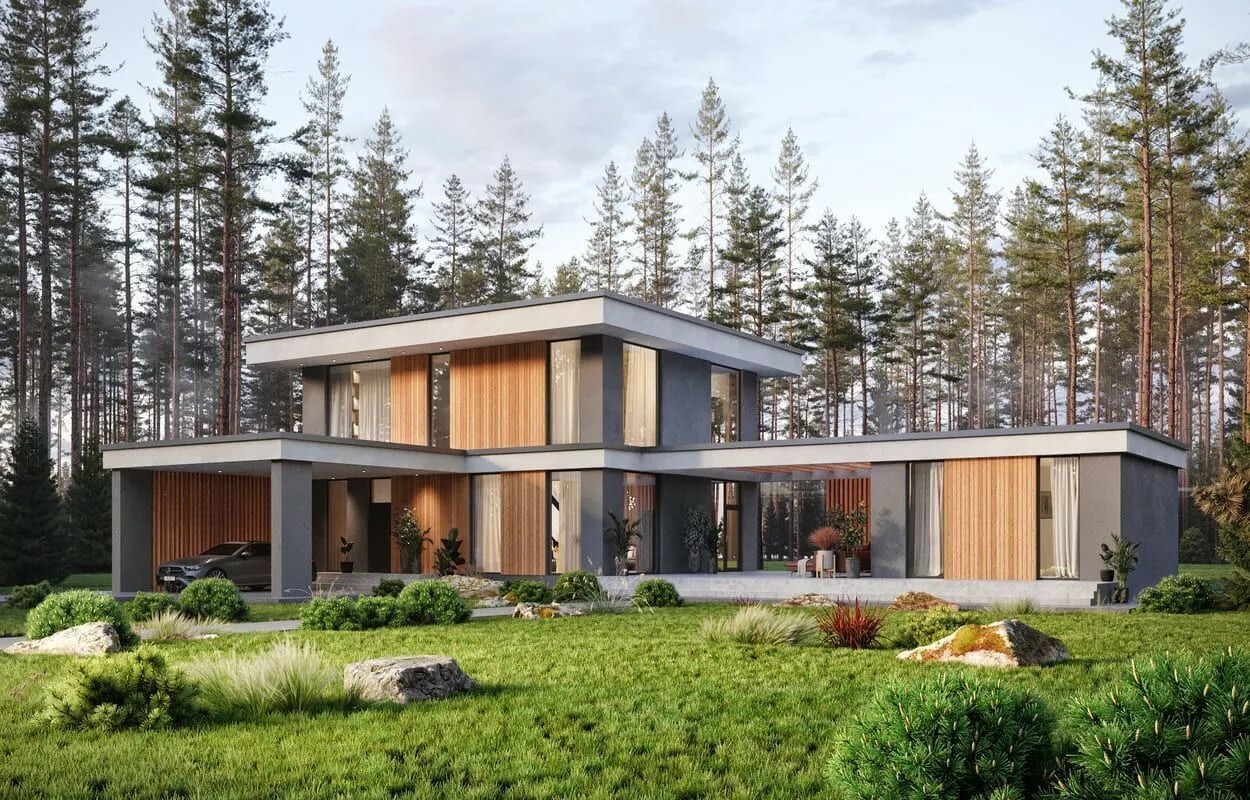 Этот проект дома идеально подходит для семьи из 3–5 человек, ценящих комфорт, пространство и современный стиль жизни. В доме есть все необходимое: три отдельные спальни, кабинет, просторная кухня-гостиная, три санузла, мастер-спальня с гардеробом и индивидуальным санузлом, большая терраса, балкон, а также отдельный блок отдыха с сауной. Дом выполнен в современном стиле с акцентом на функциональность, уют и свет.