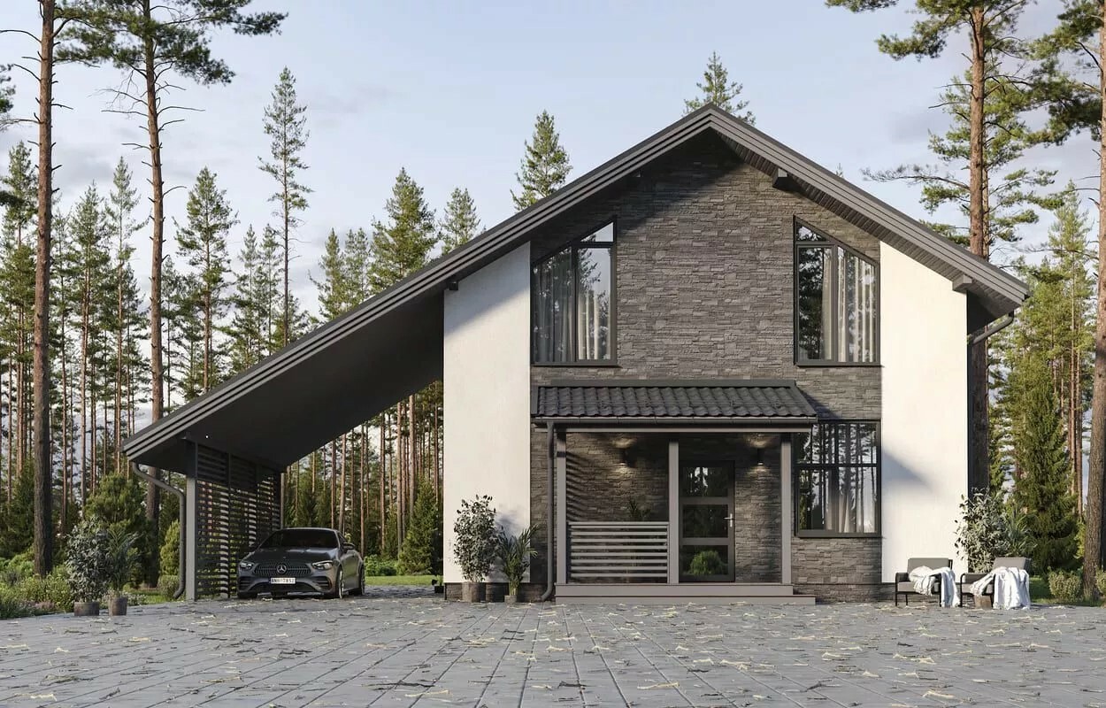 Планировка дома продумана для комфортного проживания семьи из 4–6 человек.