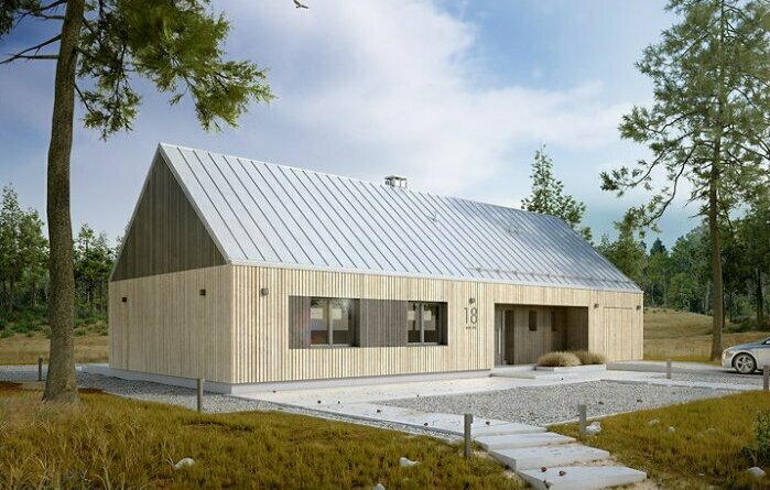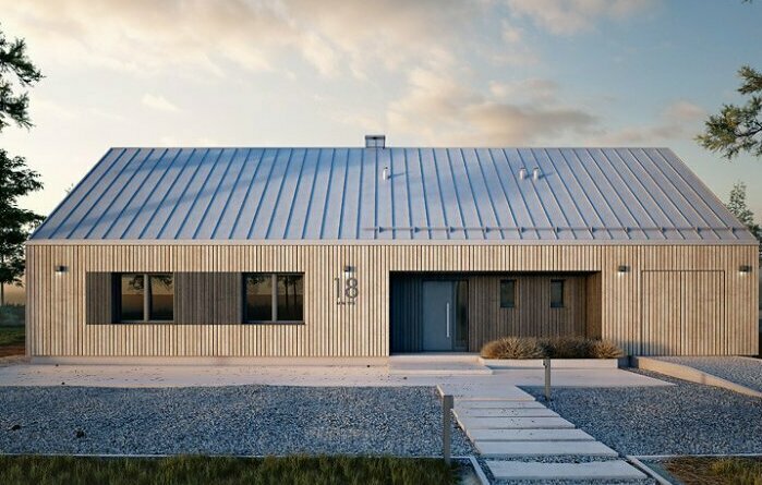 Этот дом представляет собой современный одноэтажный проект дома с гаражом. План включает жилые комнаты, кухню, санузлы и удобную зону для автомобиля, ориентированную на комфорт семьи из 3–4 человек. Общая полезная площадь составляет около 191 м2, с акцентом на открытое пространство гостиной-столовой.