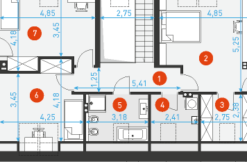 Для быта предусмотрена прачечная‑сушильная 5,5 м² и ванная 7,3 м², благодаря чему все основные хозяйственные процессы можно вести прямо на спальном этаже. Две дополнительные комнаты 15,9 и 18,8 м² подойдут детям, подросткам или гостям, обеспечивая каждому своё уютное пространство.