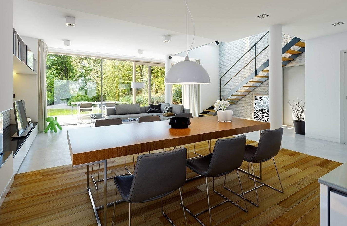 Это компактный, но функциональный двухэтажный дом общей используемой площадью 240. Планировка построена так, что вся активная жизнь сосредоточена внизу, а наверху расположена приватная спальняя зона.