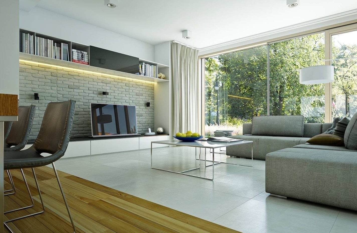 - Гостиная + столовая – 43,9 м².