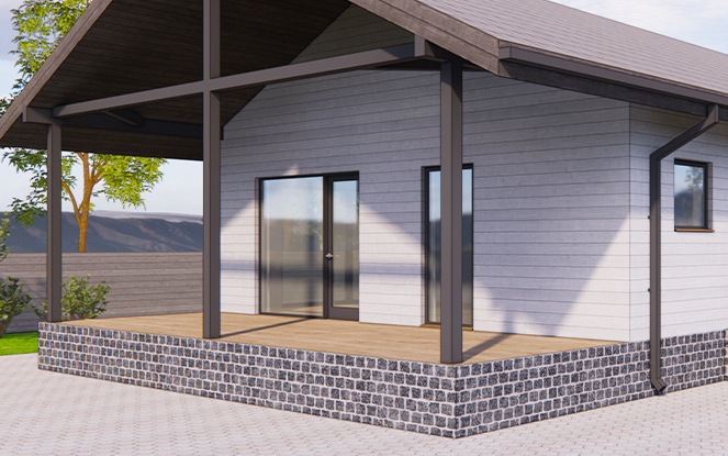 Особое внимание уделено входной зоне: уютное крыльцо с входом и крытая терраса с левой стороны дома расширяют жилое пространство и предоставляют прекрасную возможность отдохнуть на свежем воздухе в любое время года.