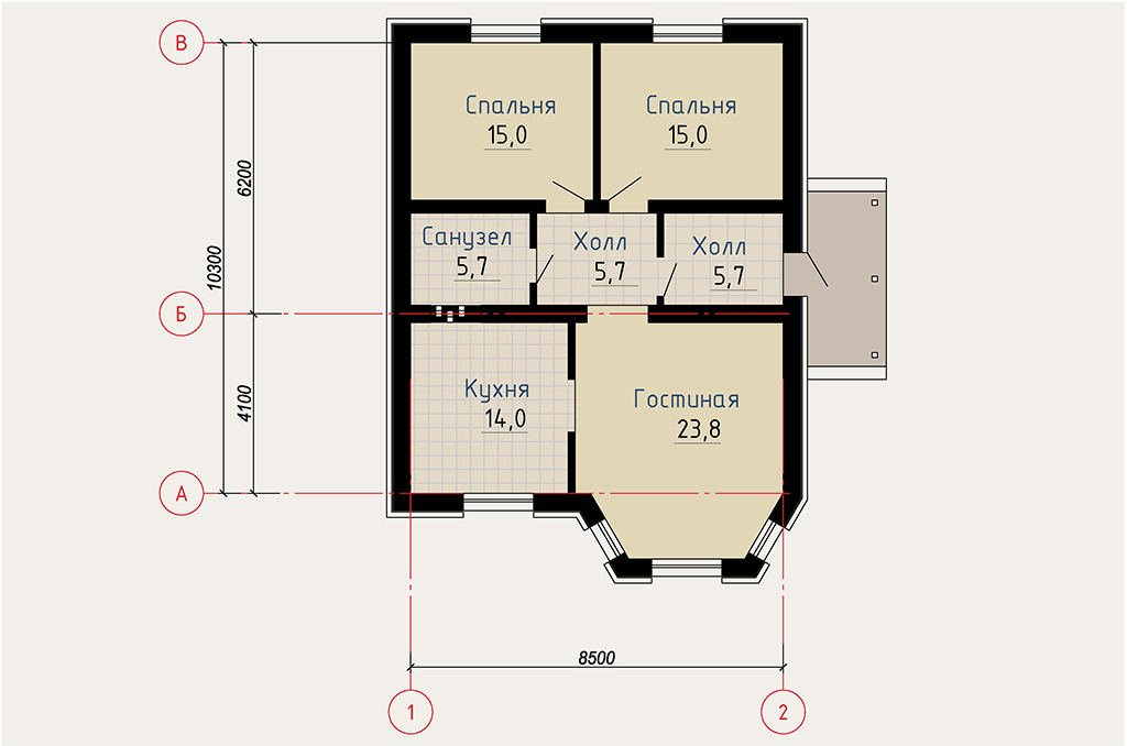 Дом 88 м² Виста -6 (10,3 × 8,5 м)